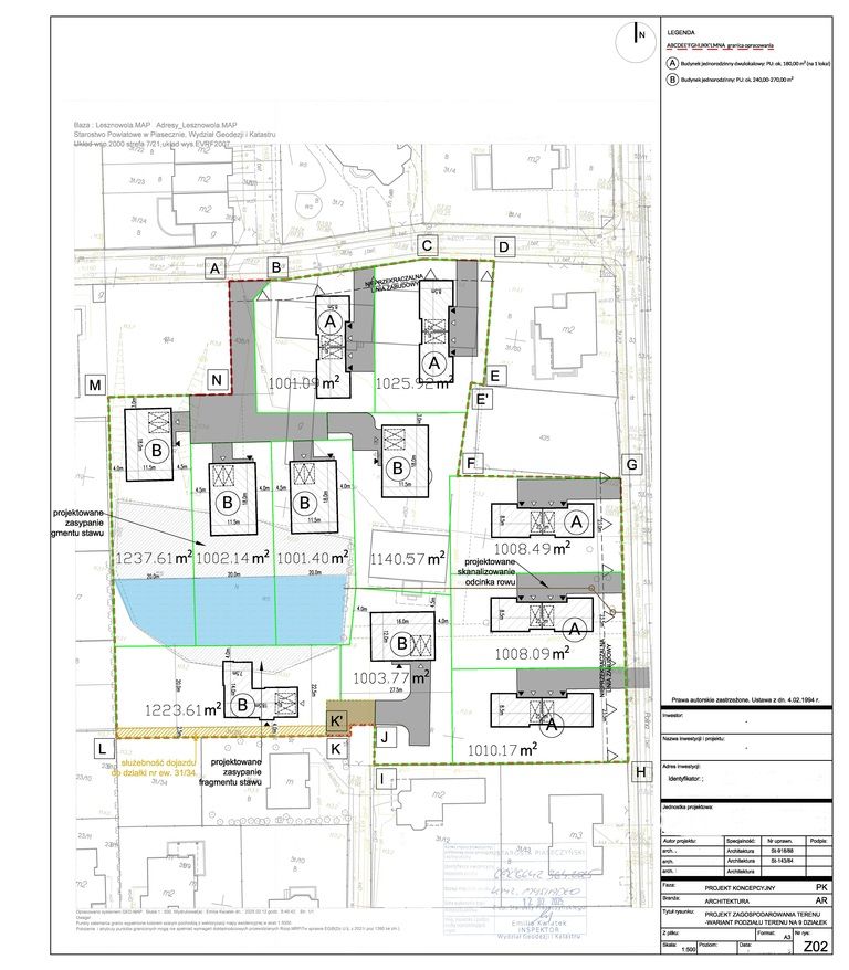 Przygotowana koncepcja architektoniczna podziału na 11 samodzielnych działek.