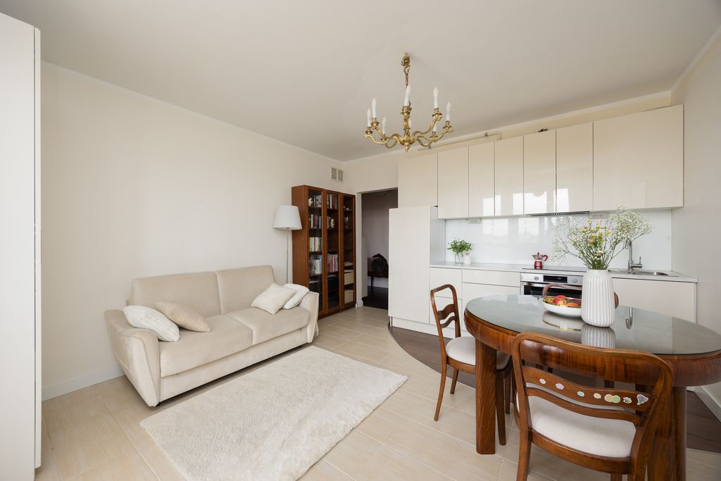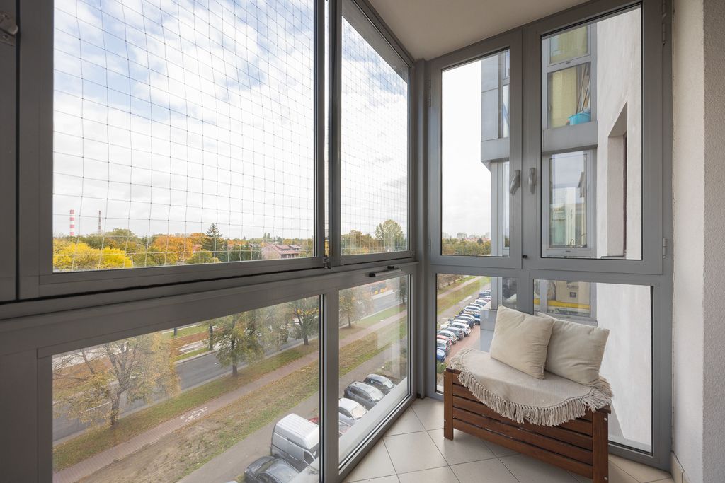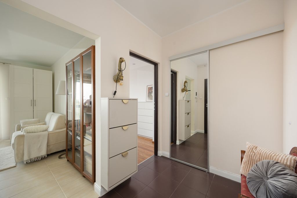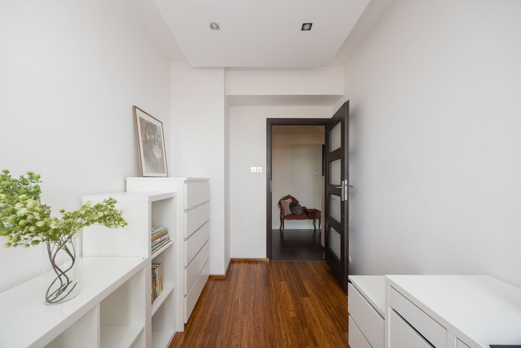 Z loggii i okien rozpościera się widok na panoramę miasta. Wysokość pomieszczeń wynosi 266 cm. Na uwagę zasługuje również praktyczna garderoba, która stanowi duży atut mieszkania.