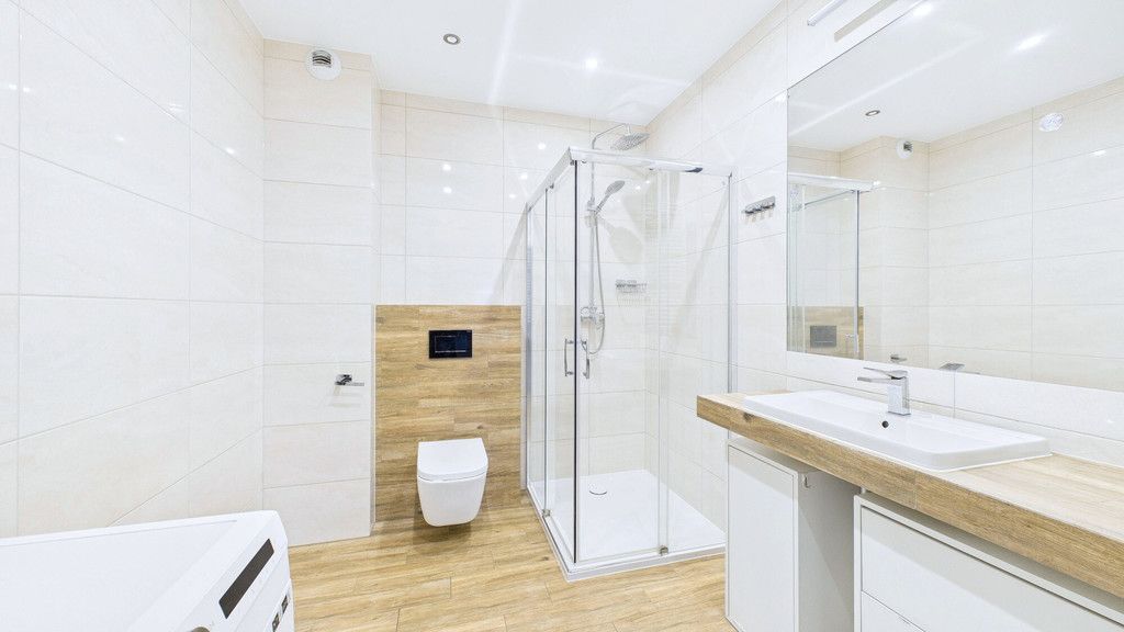 • nowoczesna łazienka w neutralnych kolorach
