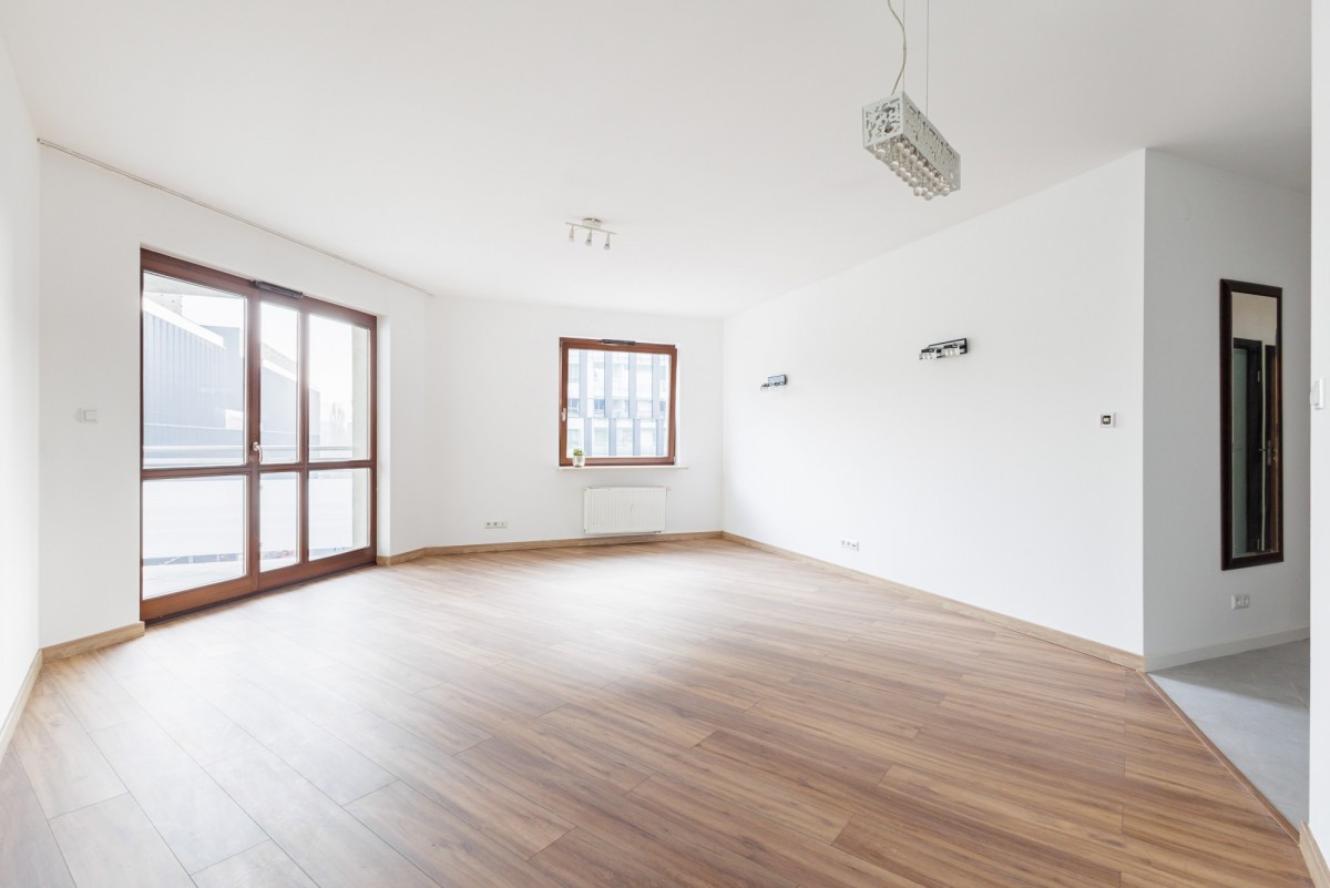 The offered apartment is elegant and functional, with a total area of 86 m². It consists of a living room with a kitchenette, a spacious bedroom, a study, a bathroom, and a separate toilet.