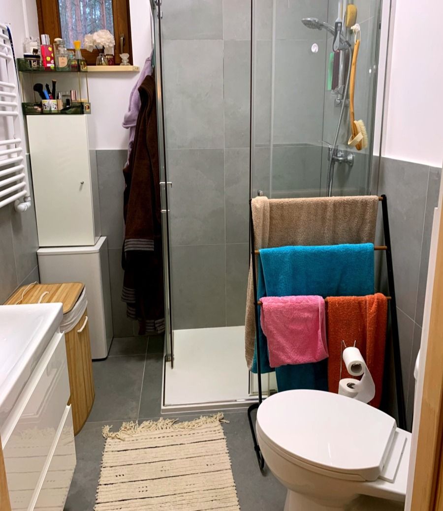 Dwie sypialnie, przedpokój, łazienka z prysznicem i poddasze do zagospodarowania.