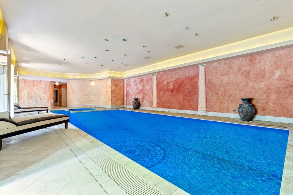 Z przyjemnością przedstawiam wyjątkową rezydencję parterową o powierzchni 652,9m² z całorocznym basenem wewnętrznym, zlokalizowaną w prestiżowej części Konstancina pod Warszawą. Dom zaprojektowany w stylu włosko-prowansalskim, z dachówką sprowadzaną z Prowansji, urzeka nie tylko ponadczasową estetyką, ale też doskonale przemyślanym układem wnętrz i czterema stanowiskami garażowymi. Na działce o powierzchni 3134 m² znajduje się starannie zaprojektowany ogród, który wraz z otaczającą zielenią gwarantuje pełną prywatność i niepowtarzalny klimat śródziemnomorskiej rezydencji tuż pod Warszawą.
