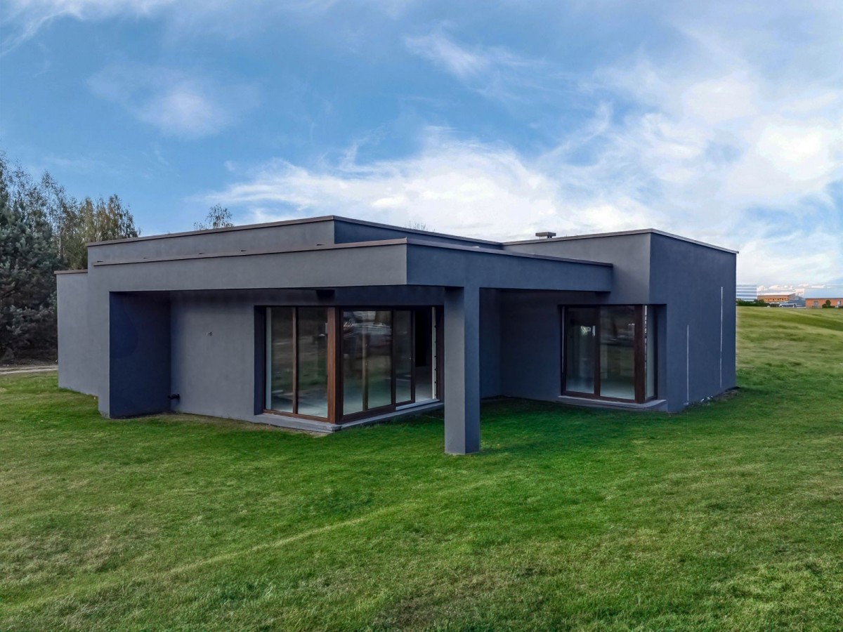 Parterowy, z płaskim dachem i grafitową elewacją - budowany przez właścicieli dla siebie z troską o każdy detal.