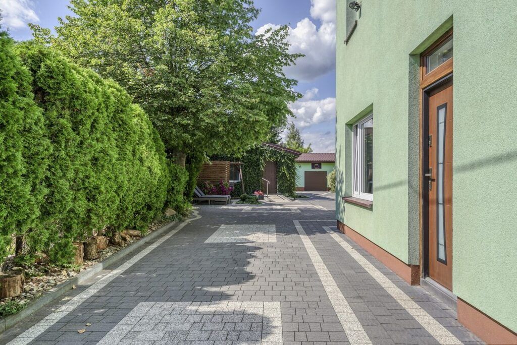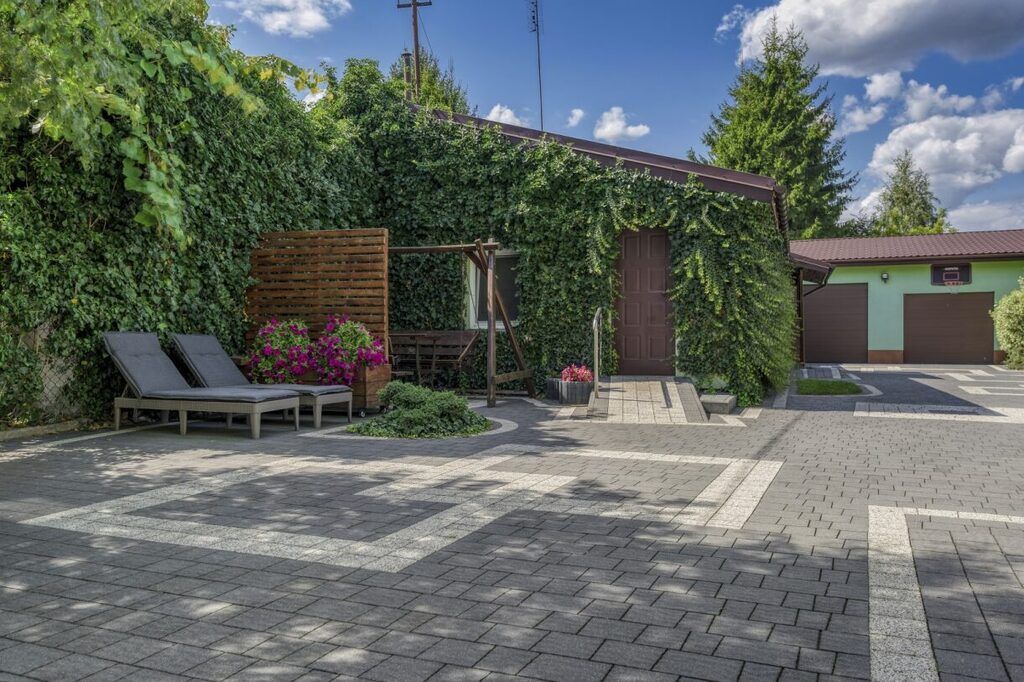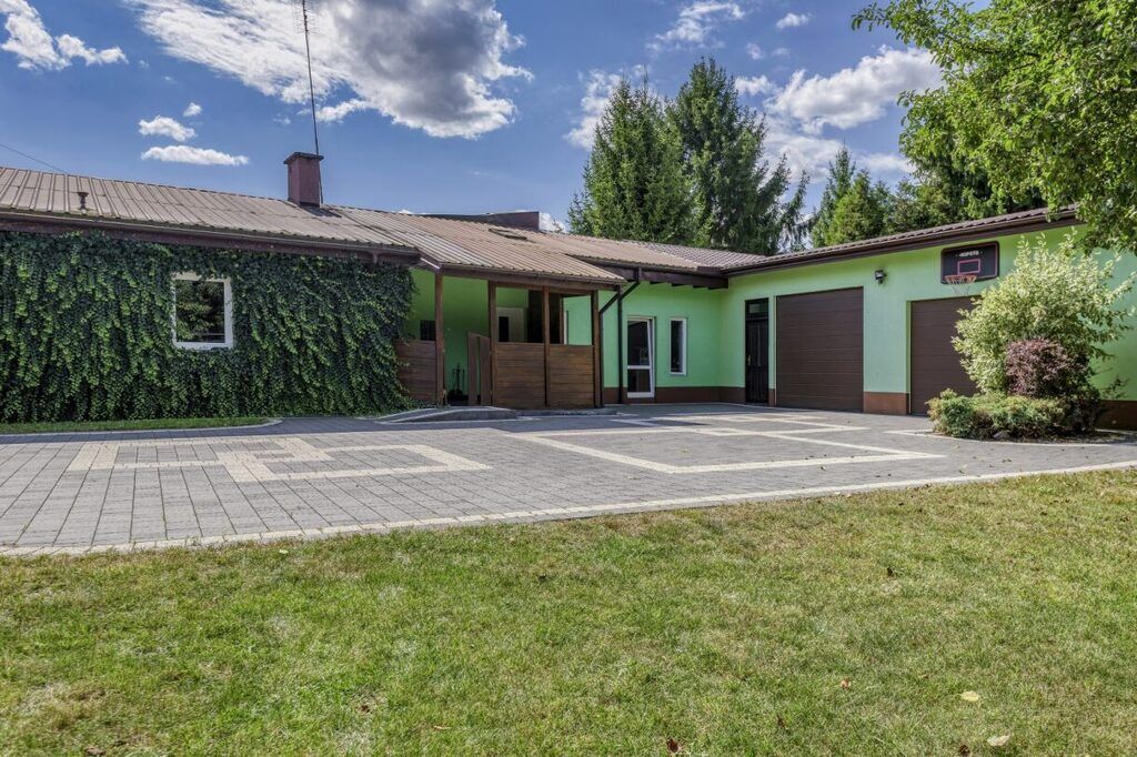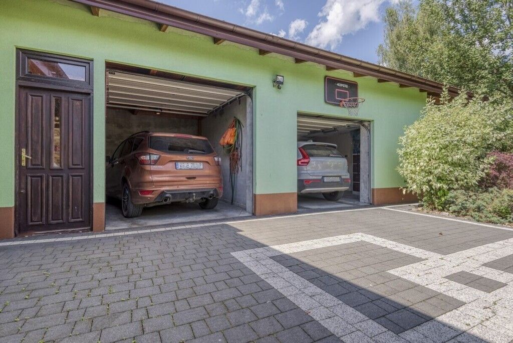 - Dwa garaże ocieplone z automatyczną bramą, o powierzchni 80 m², podłoże beton przemysłowy.