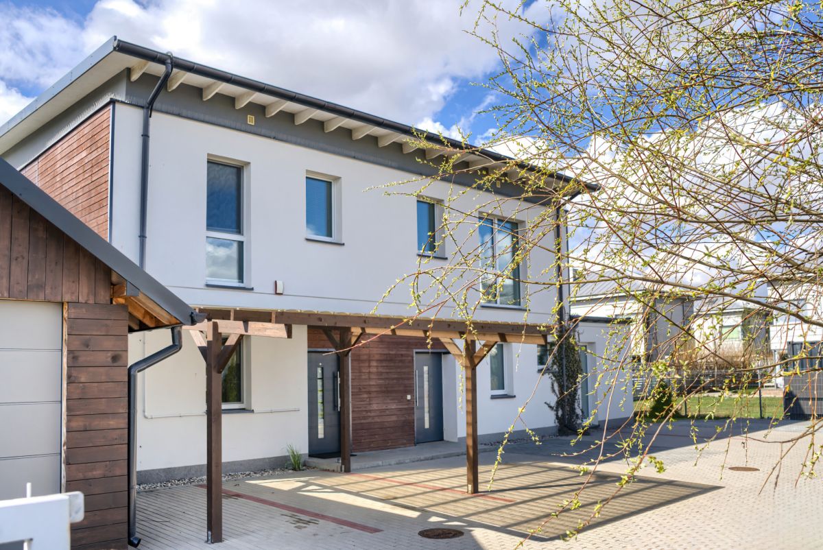 Wyremontowany dom w zabudowie bliźniaczej o powierzchni 90 m² rozłożony na dwóch kondygnacjach, zaprojektowany z myślą o rodzinie.