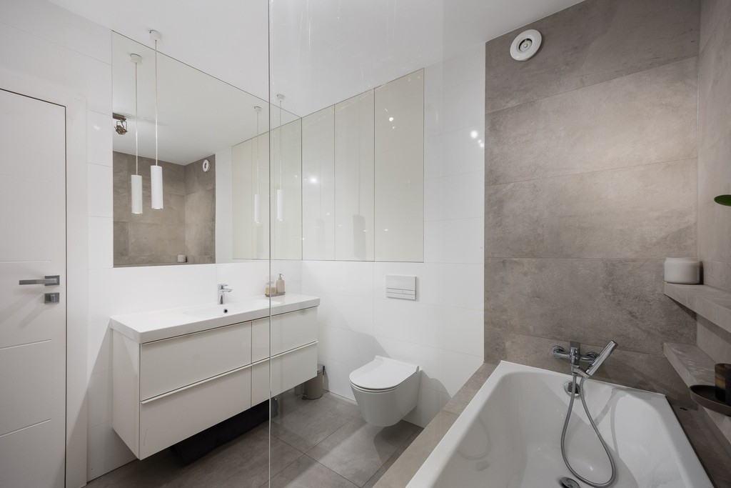 • Elegancka łazienka z dużym prysznicem i wanną, wyposażona w ogrzewanie podłogowe -7,2 m²