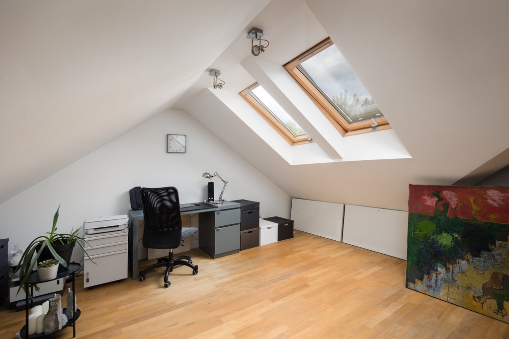 • Gabinet, garderoba i pralnia: duża przestrzeń bardzo funkcjonalnie zaprojektowana. Do pralni doprowadzona woda i kanalizacja. Gabinet funkcjonalny z dużymi dachowymi oknami oraz garderoba w którem pomieścimy wiele rzeczy – około 28 m².