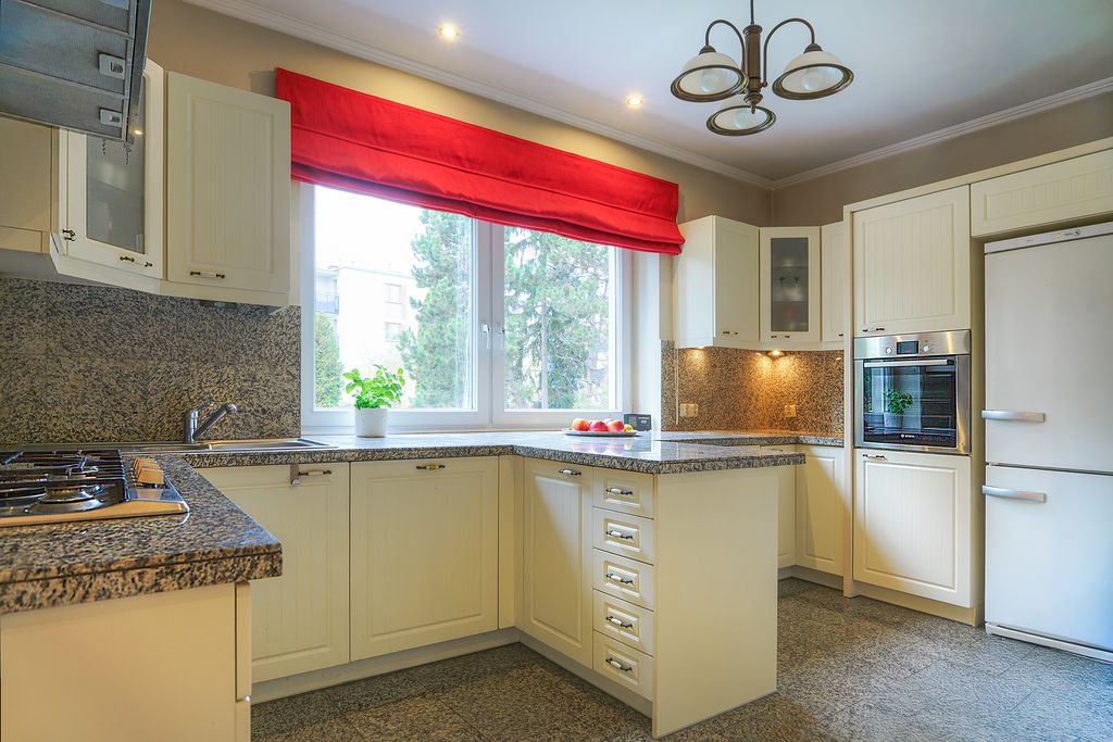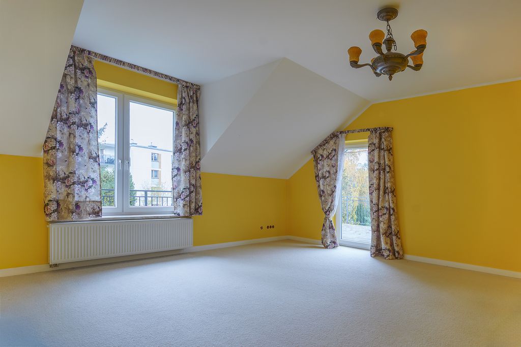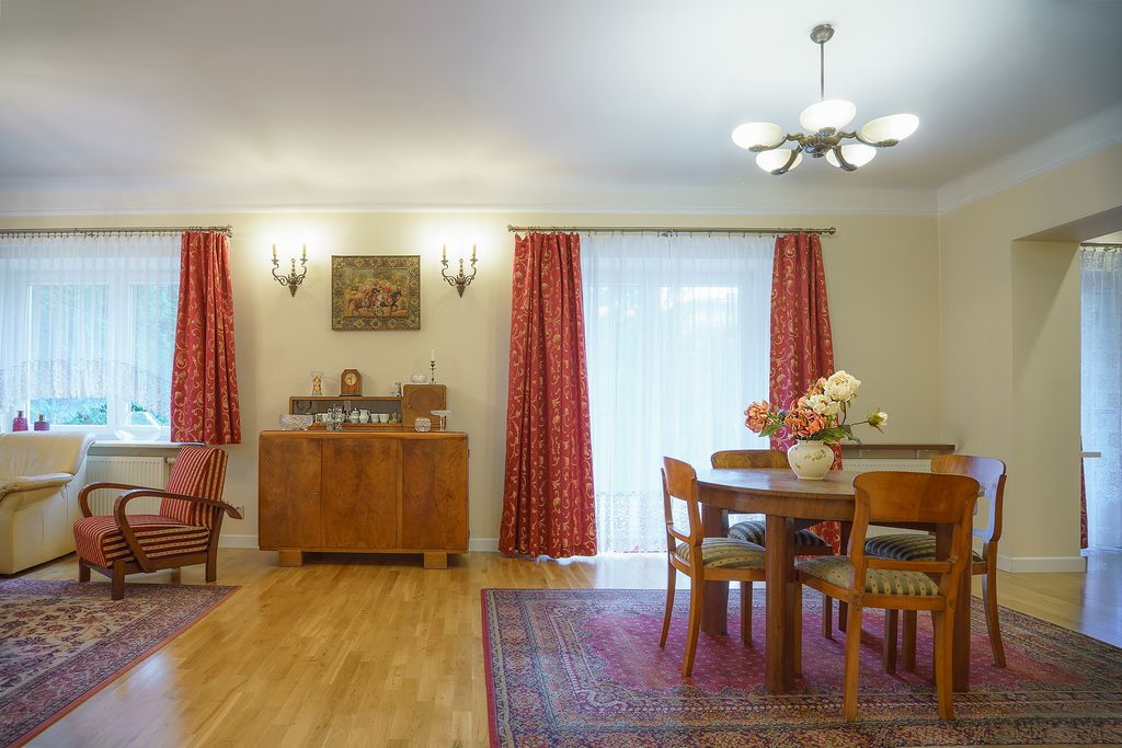 - Wnętrza charakteryzuje dbałość o detal i użycie szlachetnych materiałów. Podłogi na parterze i poddaszu pokrywa drewno dębowe (w sypialniach wykładziny), natomiast w kuchni i jadalni położono ponadczasowy granit. Łazienki są po remoncie, z nowymi glazurami i terakotami. Dom jest bardzo dobrze doświetlony i ma w sumie 6 pokoi.