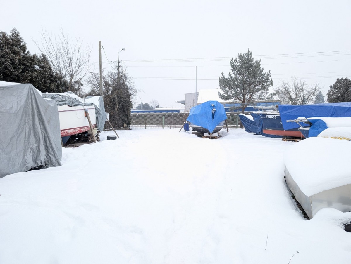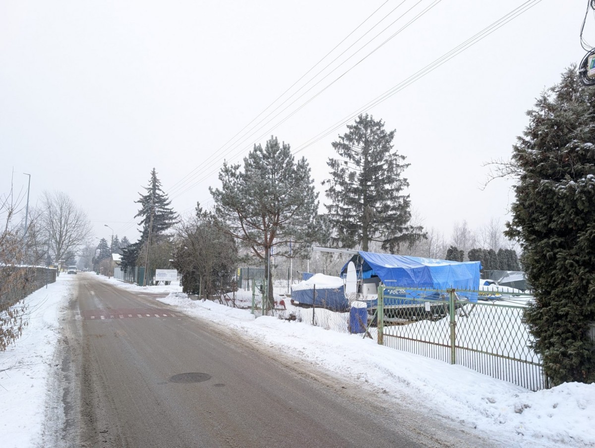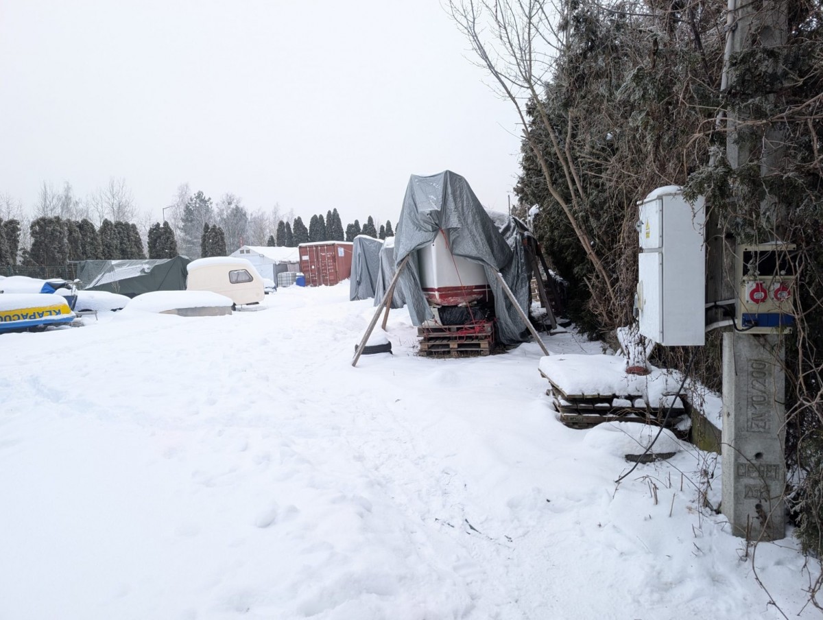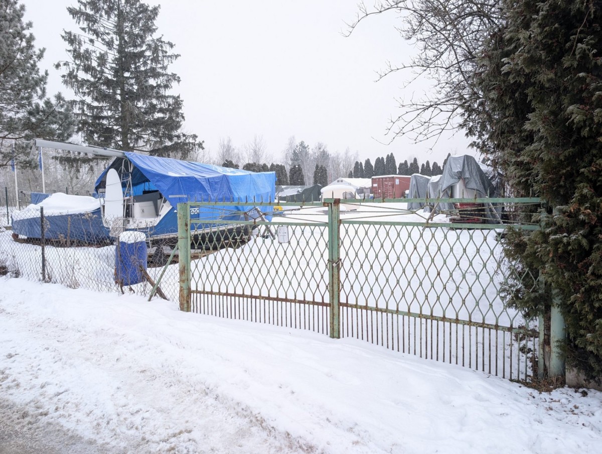 Działka niezabudowana, aktualnie wykorzystywana na sezonowe składowanie jachtów.