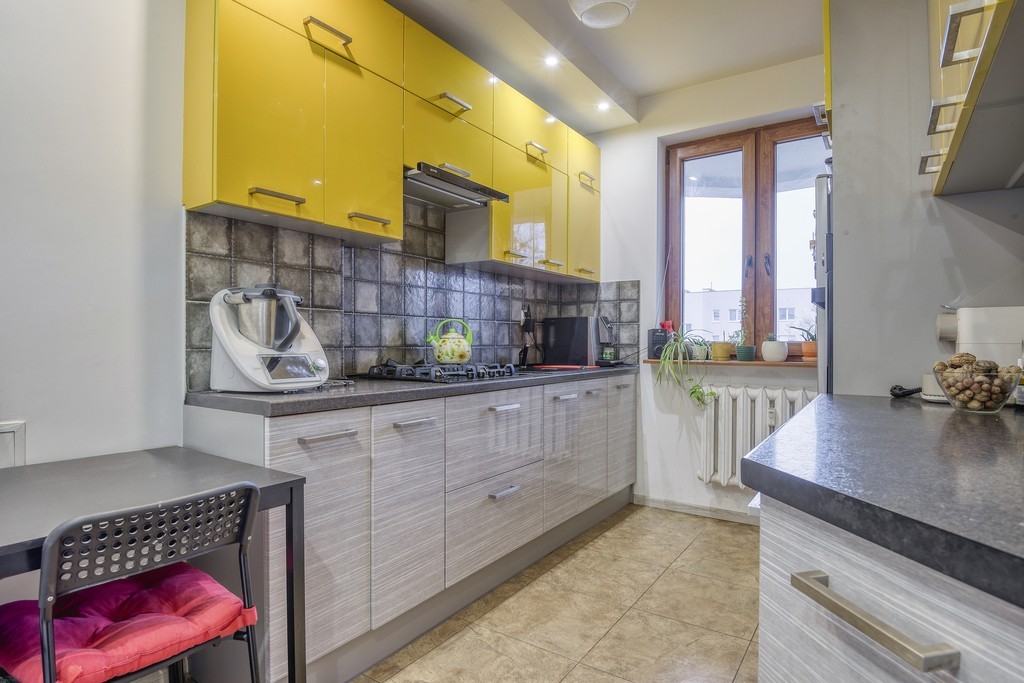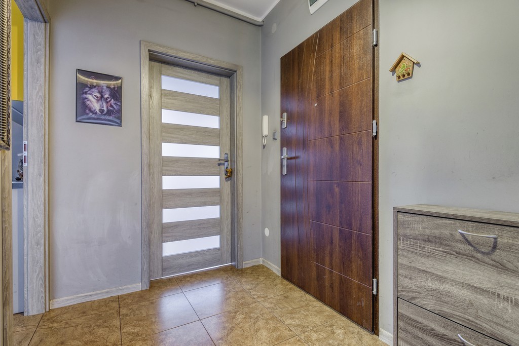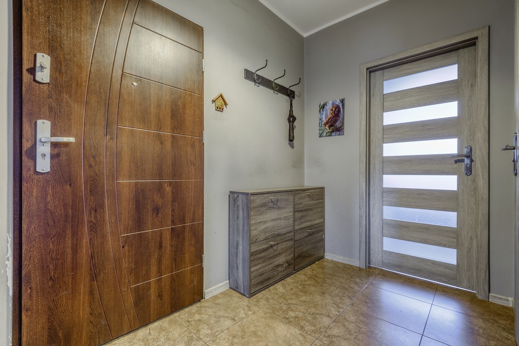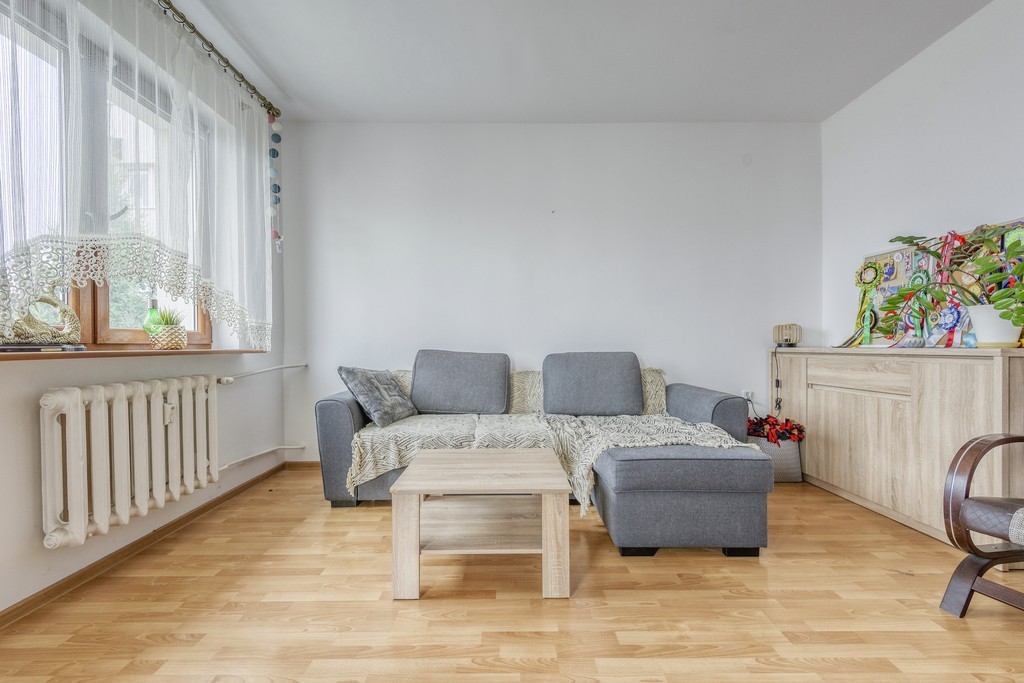 Okna PCV, na podłodze panele i terakota. Mieszkanie gotowe do zamieszkania lub odświeżenia – idealne dla osób szukających przestrzeni do własnej aranżacji.
