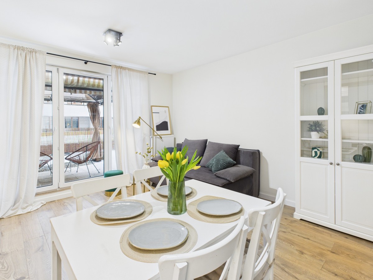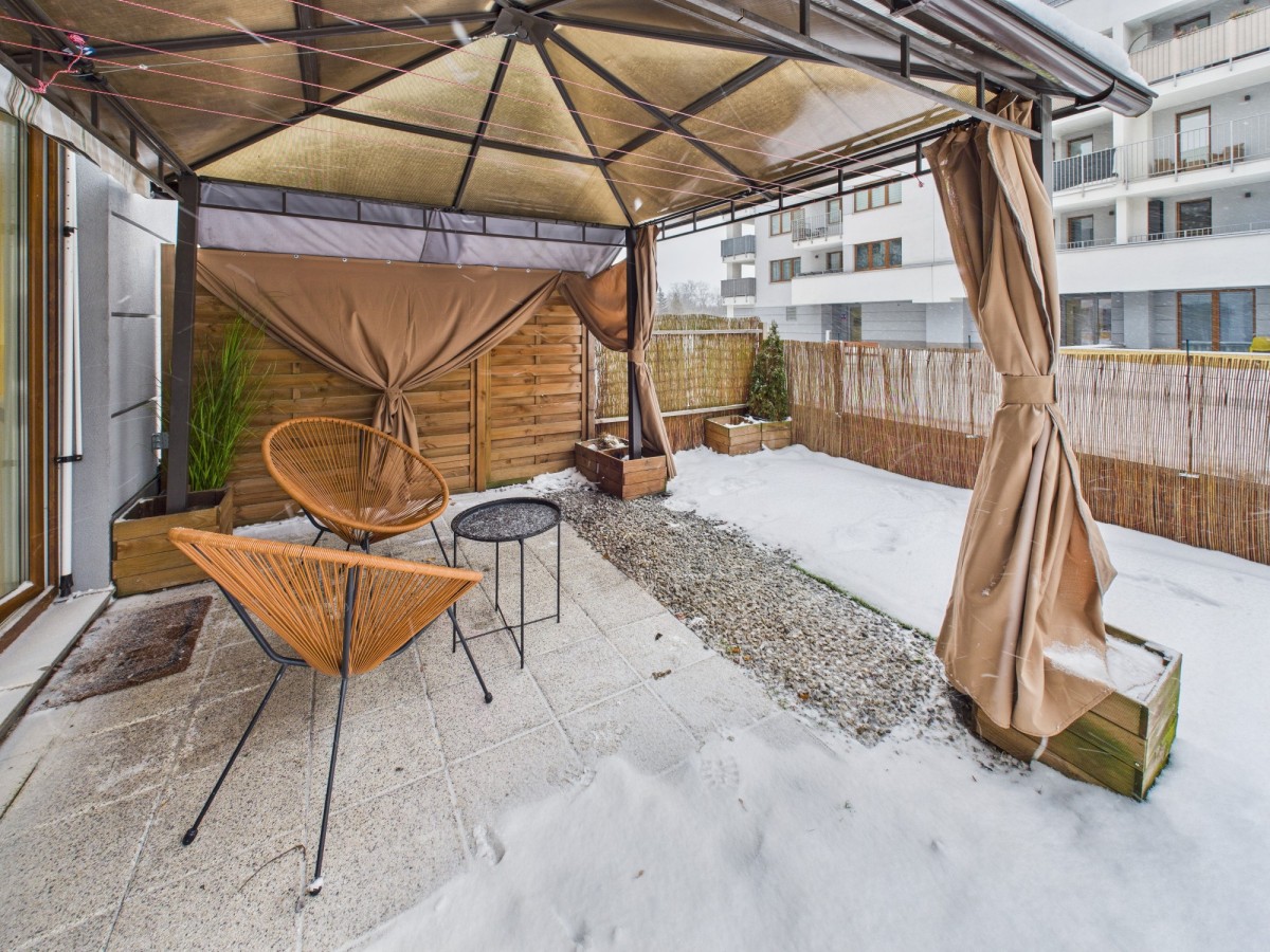 To idealna propozycja dla osób ceniących komfort, funkcjonalność i kontakt z zielenią przy jednoczesnej bliskości infrastruktury i terenów spacerowych. Ogromnym atutem jest bezpośrednie wyjście do ogródka zarówno z salonu, jak i z sypialni. Ogródek wychodzi na wewnętrzne osiedlowe patio - bez ulic, bez placów zabaw, bez hałasu. Cisza, spokój i pełna prywatność przez cały dzień.