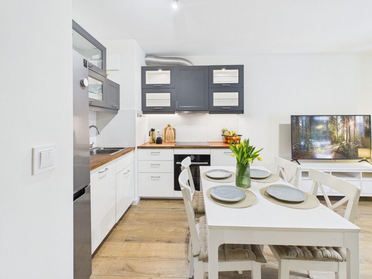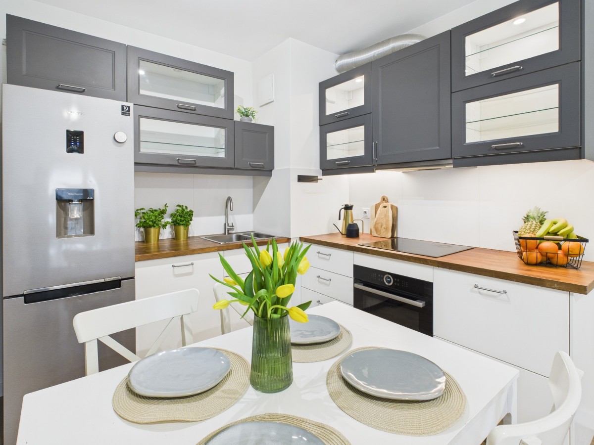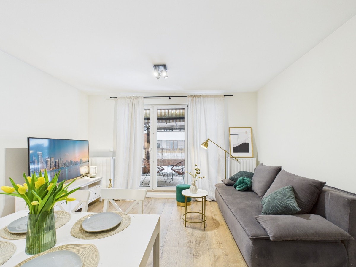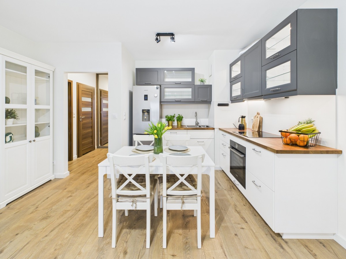 - jasny, przestronny salon z aneksem kuchennym (ok. 20 m²) - wszystkie meble i sprzęty AGD w cenie,