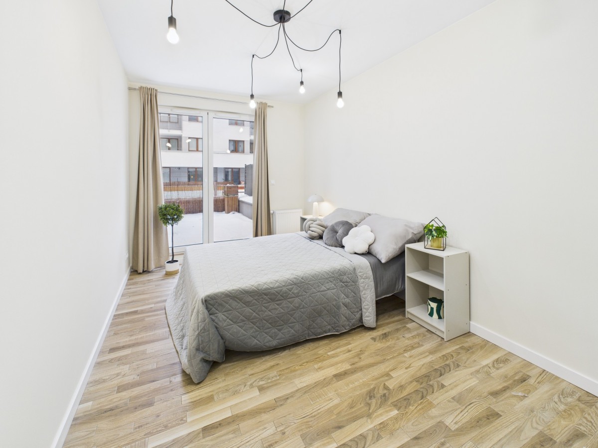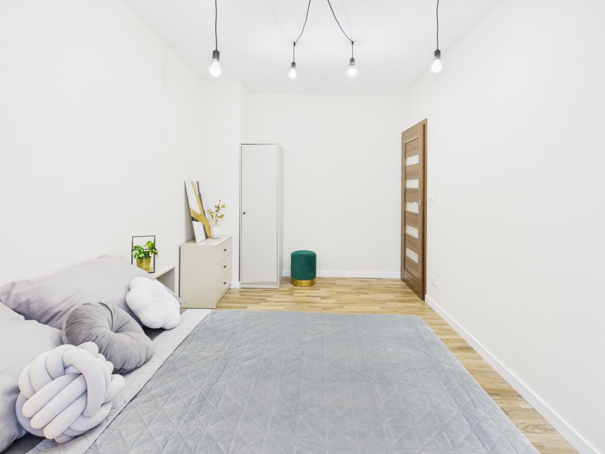 - funkcjonalna i przestronna sypialnia (ok. 14 m²) z łóżkiem, komodą, szafą i szafkami nocnymi (z możliwością wykonania zabudowy),