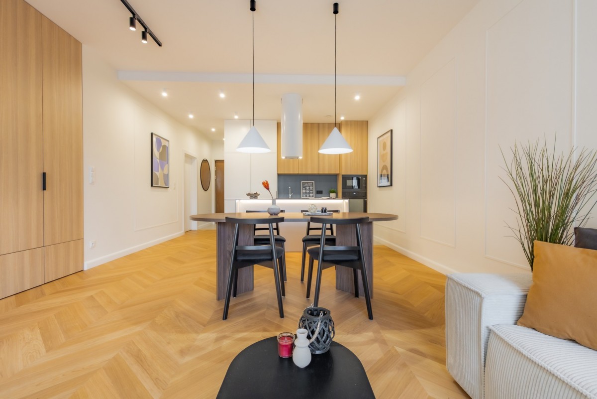 Doskonale wykończony i rewelacyjnie zaprojektowany apartament, położony na 2 piętrze, 6 piętrowego, apartamentowca "Dom Na Dolnej", położonego w jednej z najpopularniejszych i najbardziej lubianych dzielnic miasta, Mokotowie. Projekt wykonany w wysokim standardzie, w konwencji minimalistycznej elegancji z niebywałą precyzją i smakiem.