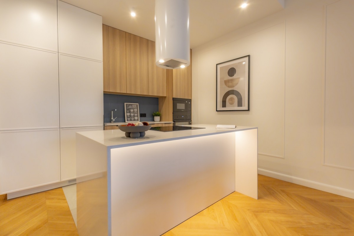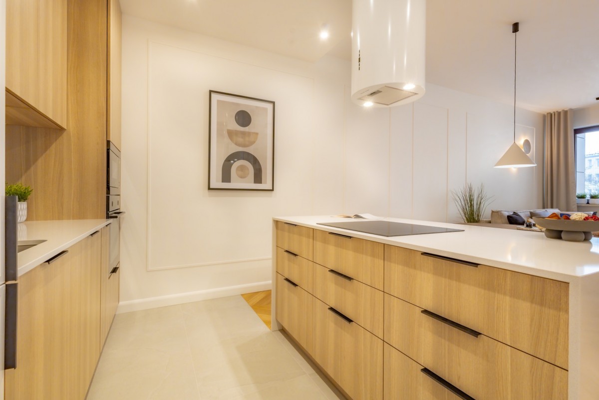 - Ergonomiczny, wygodny, w pełni wyposażony aneks kuchenny z dużą funkcjonalną wyspą