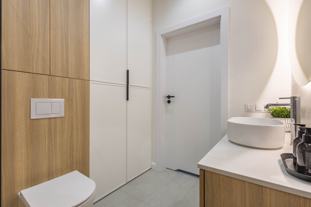- łazienkę z dużym prysznicem typu walk in oraz zabudową na pralkę i suszarkę