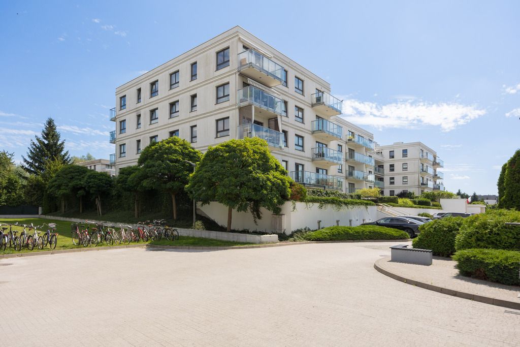 Nearby sports infrastructure includes running/walking paths, a beach, sports fields, restaurants, and public transport stops. The Czerniakowski Lake Reserve is within walking distance. A quiet and peaceful neighborhood dominated by modern architecture.