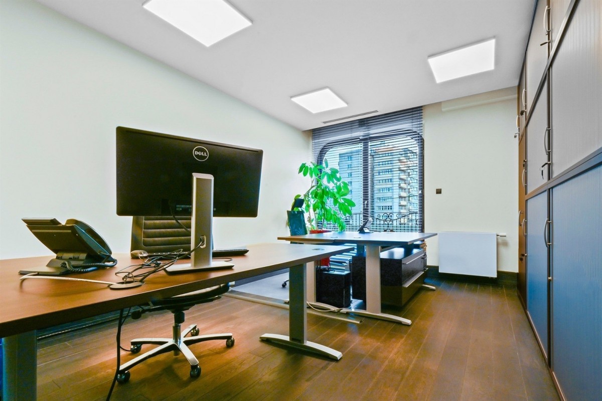 Mieszkanie / przestrzenie biurowe zostało wykończone w bardzo wysokim standardzie, z dbałością o najmniejszy szczegół. Podłoga wyłożona dębową deską barwioną na kolor grafitowy, w łazienkach stylowa armatura. Wszystkie pomieszczenia klimatyzowane. Pełne wyposażenie do pracy biurowej w cenie ofertowej.