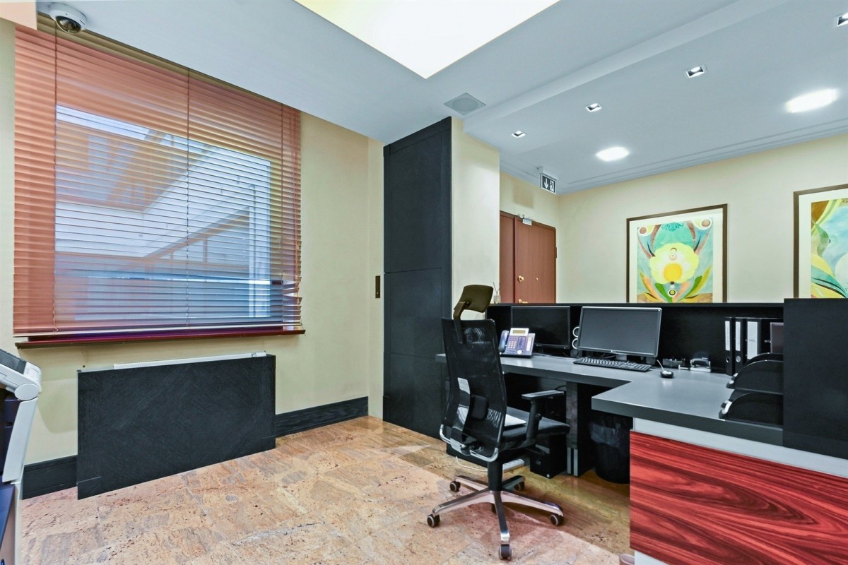 Lokal na drugim piętrze powstał z połączenia dwóch mieszkań opisanych na dwóch osobnych księgach wieczystych. Przestrzeń zaaranżowano i przystosowano do celów biurowych o łącznej powierzchni 240 m2. Składa się ono z: