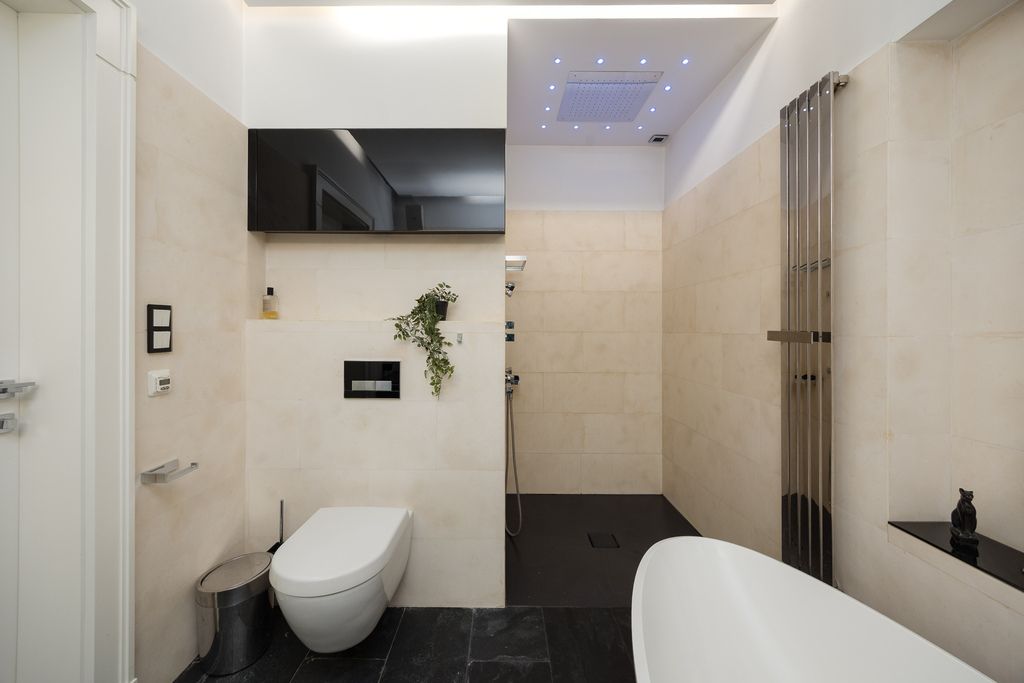 The 55 m² terrace offers privacy, peace, and open views - equipped with lighting and an automatic awning, it perfectly extends the living space outdoors.