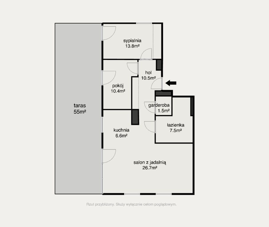- taras o powierzchni 55 m²,