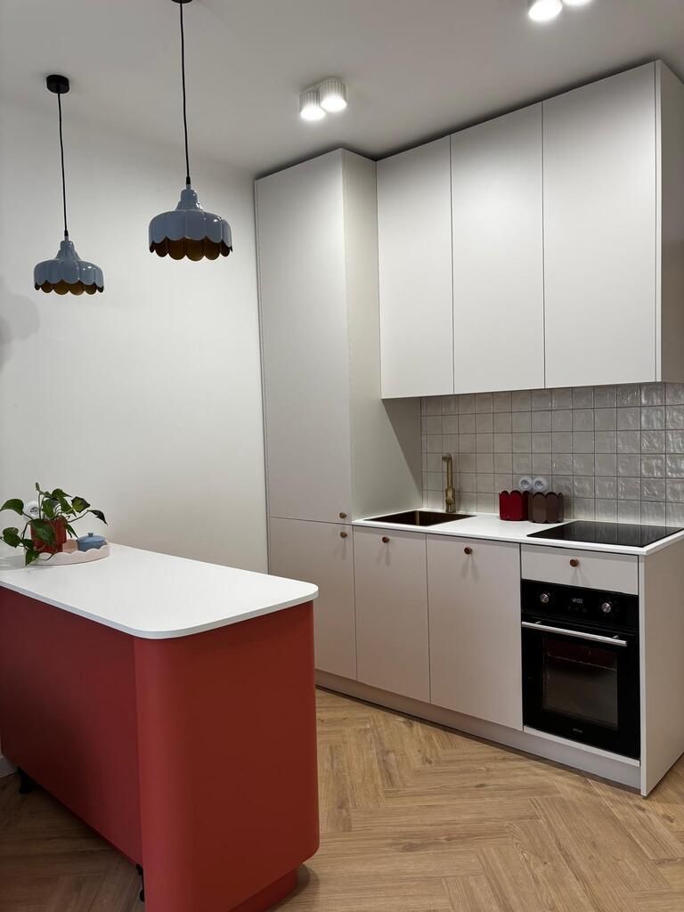 - Sprzęt AGD: lodówka z zamrażarką, zmywarka, płyta indukcyjna, piekarnik, okap