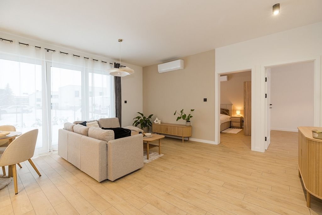 - salon z częścią wypoczynkowa z narożnikiem i klimatyzacją,