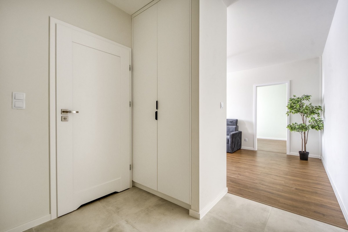 Wejście do przedpokoju z ogromną szafą, po prawej salon z aneksem kuchennym, dalej sypialnia z dużym łóżkiem i pojemną szafą. Z salonu wyjście na spory balkon. Łazienka z WC znajduje się na wprost wejścia do mieszkania. Mieszkanie dotychczas nie było zamieszkałe, wszystkie meble i sprzęty nowe i sprawne. Dogodna lokalizacja- bliskość trasy S8, delikatesy, żabka, lidl, rozwinięta sieć autobusów miejskich. Latem tego roku 5 min. od mieszkania zostanie otwarta nowa stacja metra!