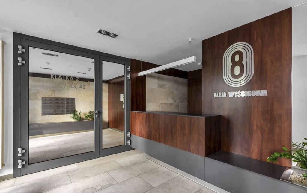 Location is one of this property’s strongest assets. The building sits right by the entrance gate to the horse racing track, which means minimal car traffic, abundant greenery, and exceptionally quiet surroundings. Trees, tranquility, and the freedom to open your windows without worrying about noise — a true luxury in Warsaw.