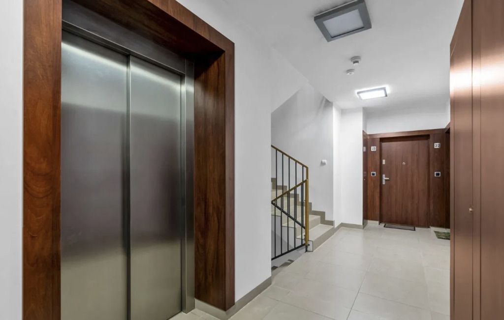 Mieszkanie położone jest na 5. piętrze, co zapewnia prywatność i poczucie kameralności. Budynek wyposażony jest w wideofon, a teren jest monitorowany, z codziennymi obchodami ochrony. Do dyspozycji mieszkańców pozostaje również zadbane, zielone podwórko – idealne miejsce na chwilę wytchnienia po dniu pełnym obowiązków.